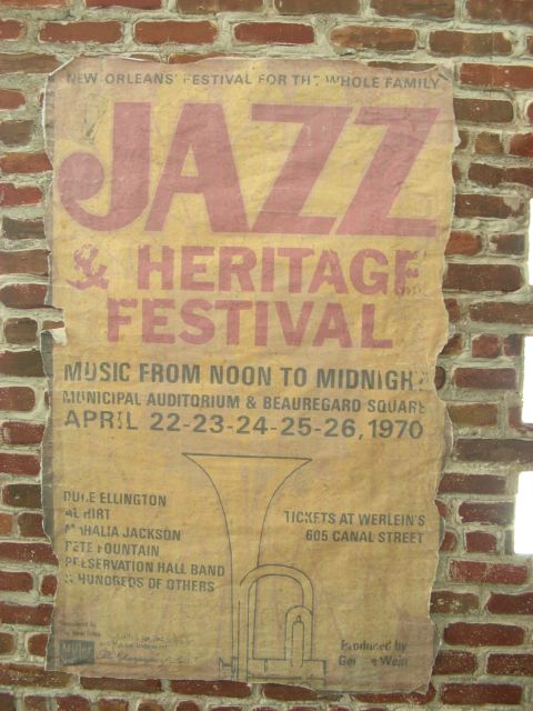 | A bit of history on display - an advertising sign from the 1st Jazzfest | ![]() |