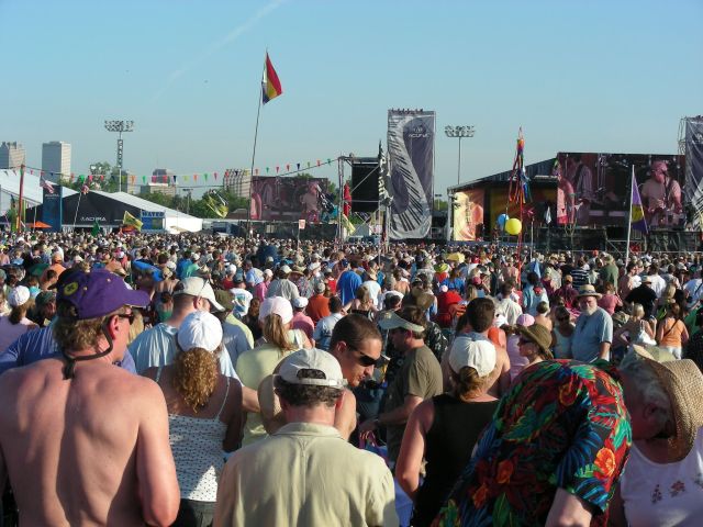 | Mud and an ominous forecast mean an unusually late arriving Buffett crowd: The Acura Stage at noon | ![]() |