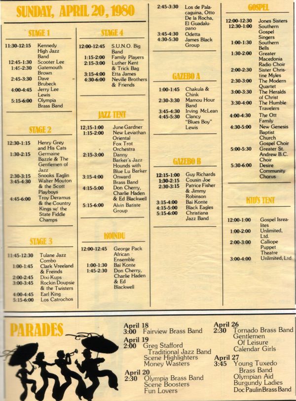 Many sites publish the schedule for the current year's New Orleans Jazz & Heritage Fesiival. But most sites take those pages down once the Fest is over, or when the next year's schedule becomes available. The Cube Rescue Program was started to archive those schedules, for those interested in the history of the world's greatest music festival, or for anyone who just wants to relive the glory of Festivals Past.